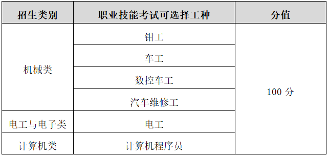 考生可根据自己报考类别选择一个工种进行职业技能考试,报考类别与工种对应情况如下表: