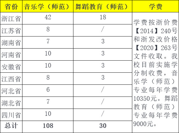 注:招生专业、计划数以各省考试院公布为准,收费严格按照浙江省物价局批文和有关规定执行。