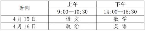 考试科目为语文、数学、政治、英语四科,每科满分为150分,四科满分为600分,使用国家通用语言文字作答。